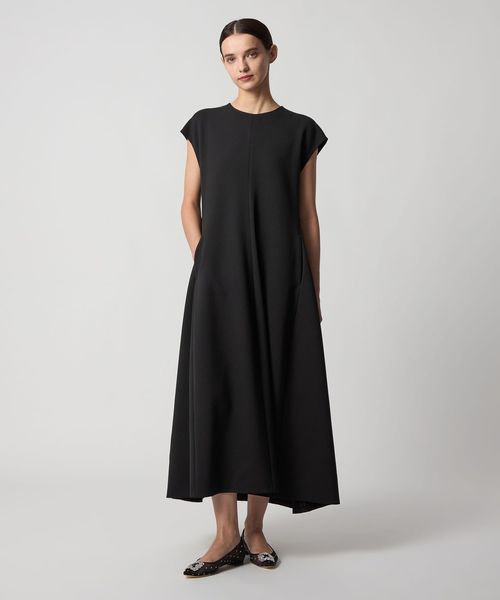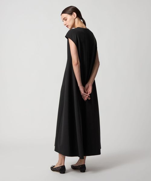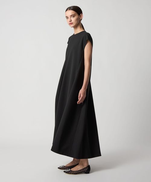 裾に向かってフレアからコクーンシルエットを演出したワンピース。