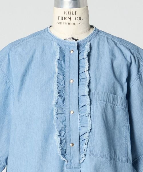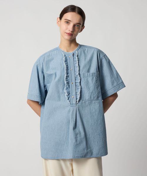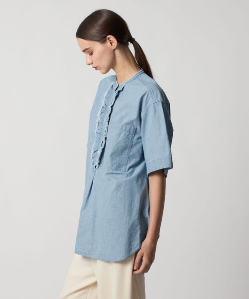 PRE シャンブレーフロントフリルブラウス