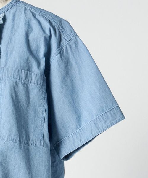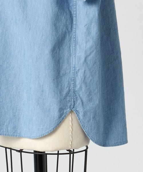 淡い色合いがポイントのインディゴ染めのシャンブレー生地を使用。