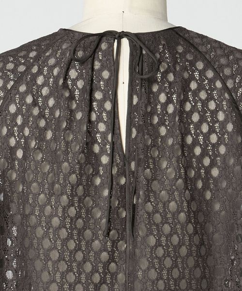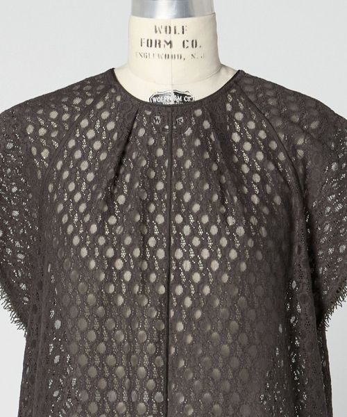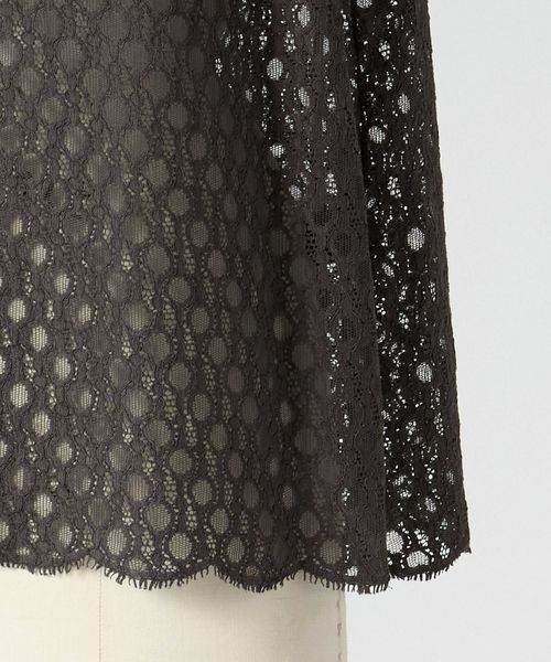 レースの美しさが引き立つシアーなフレンチ丈のショートスリーブブラウス。