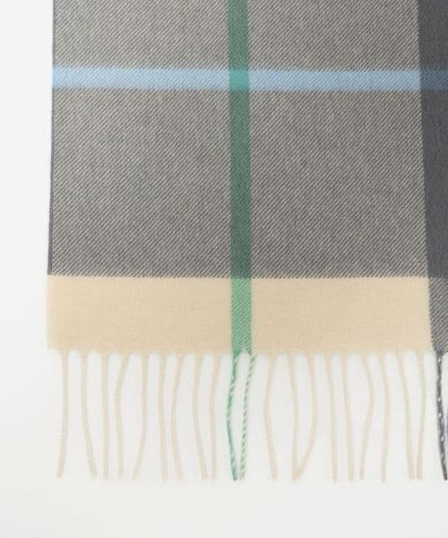 シックなアイボリーカラーを基調とした、ブルーとグリーンが効いた格子柄で仕上げたストール。