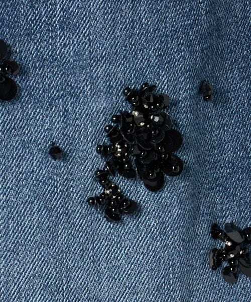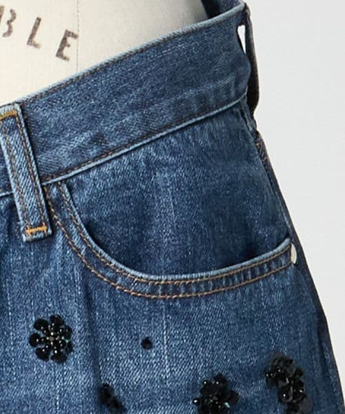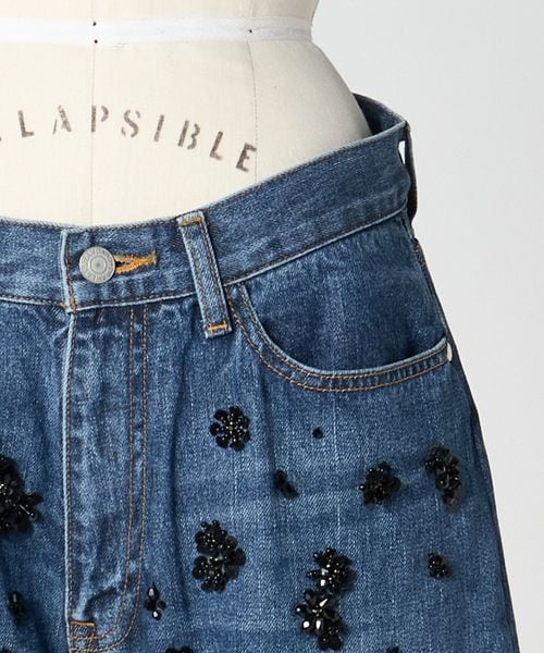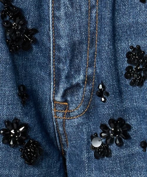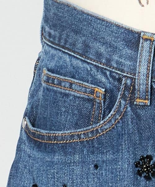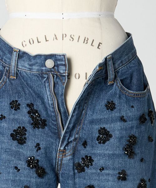 立体感と輝きのあるモチーフが華やぐデニムパンツ