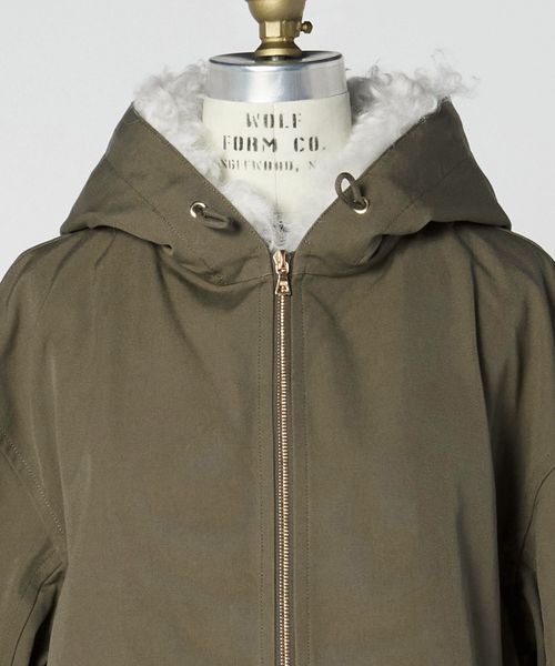 フードにはカーリーな毛足が特徴のムートンを使用。