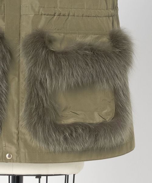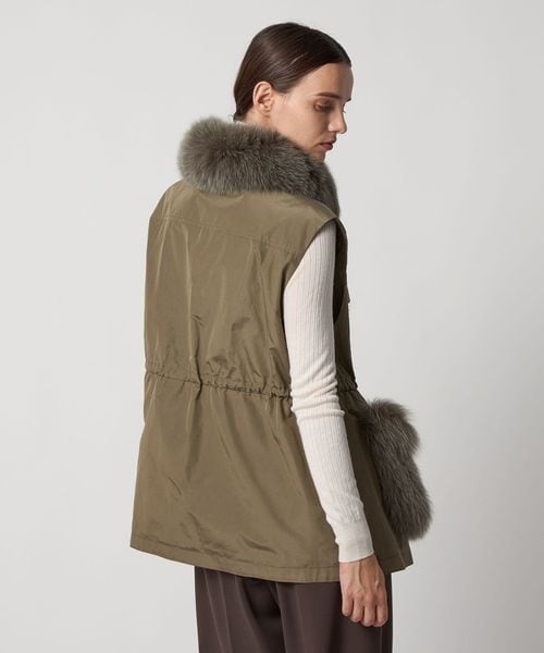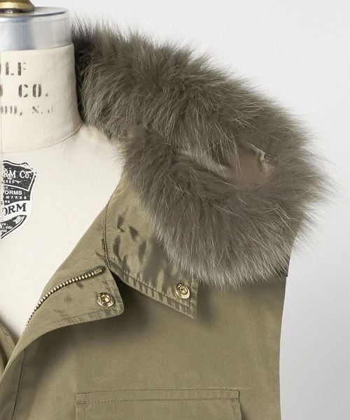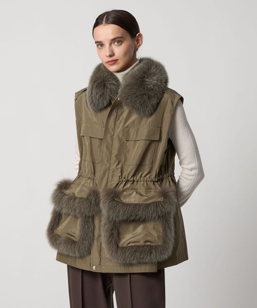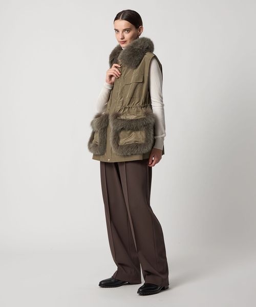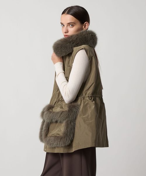 ミリタリーテイストのデザインにファーのパーツがやわらかな印象をプラスするベスト。