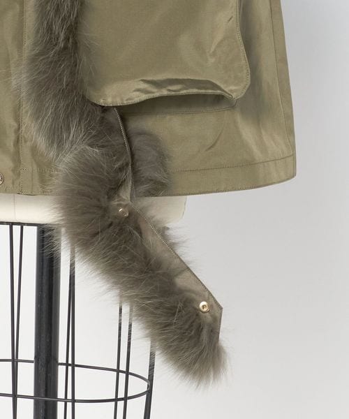 襟とポケットについたファーパーツは、取り外し可能で、気分に合わせデザインの変化を楽しめます。