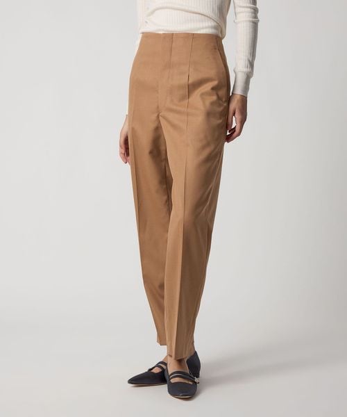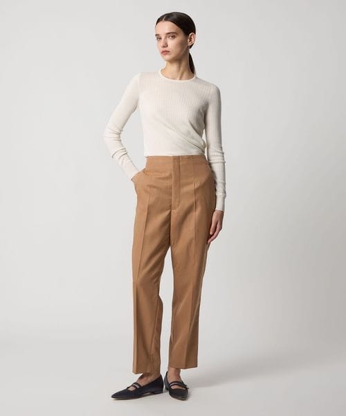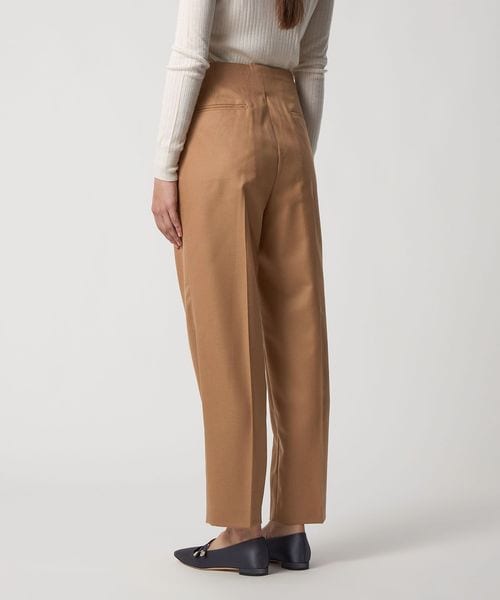 ノータックで股下からすっきりとしたシルエットに仕上げたテーパードパンツ。