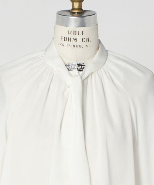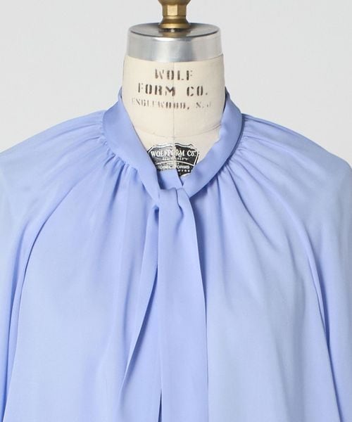 ボウタイ付きの衿ぐりは、フェミニンすぎず洗練された女性らしさを引き立てます。