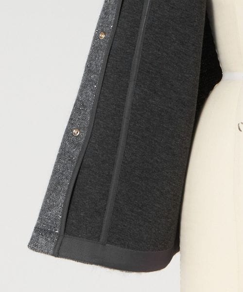 表はラメネップを入れたニット編みの素材、裏にほどよい伸びのある肌触りがよい素材を貼り合わせています。