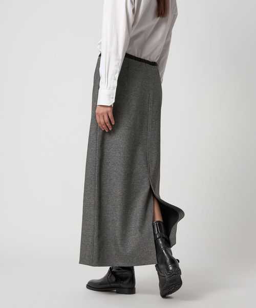 リラックス感のある着心地でいてシャープで美しいフォルムを演出するロングスカート。