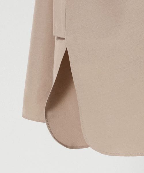 両脇に深めのドットボタン開きを施すことでかろやかな抜け感を演出。