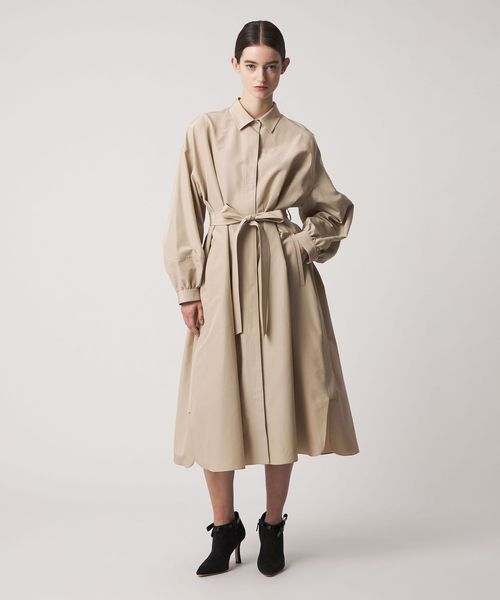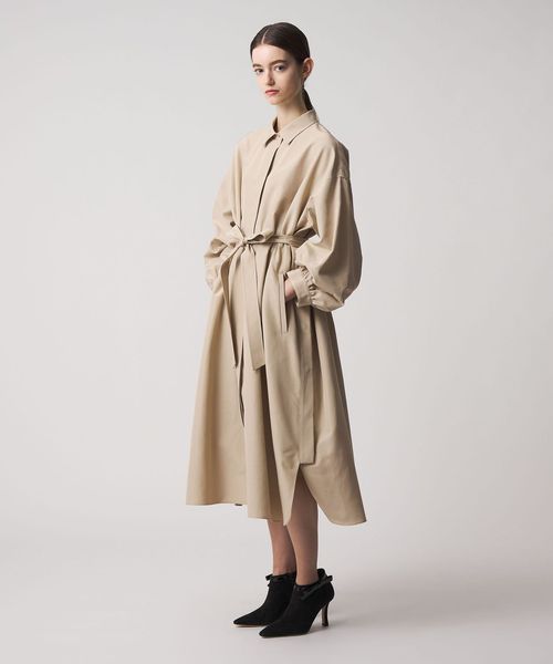 サッシュベルトのアレンジや、フロントを開けアウターのようなスタイリングも可能。