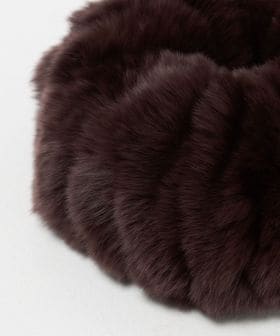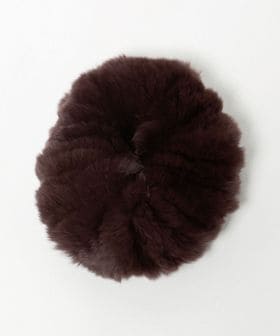 ヘアスタイルに華やかさを添えるファー素材のシュシュ。