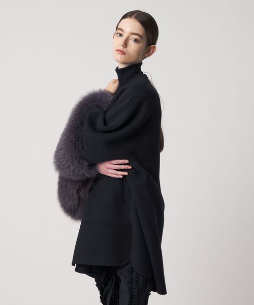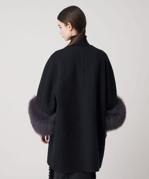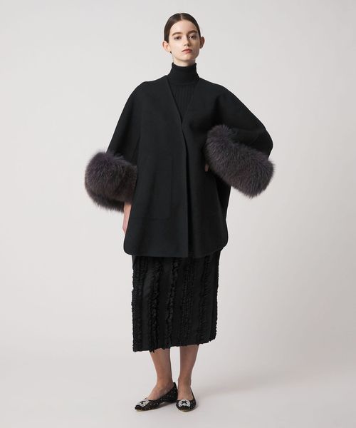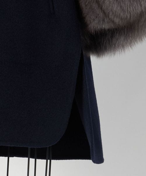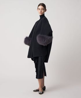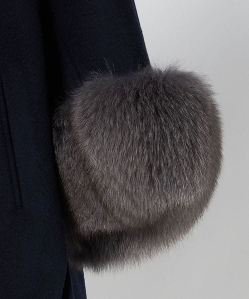 袖口のフォックスファーが華やかな印象に導くジャケット。