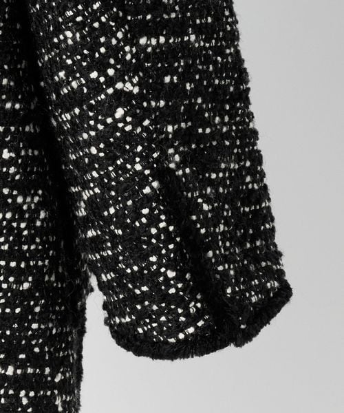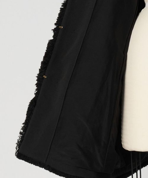 華やかなフリンジ使いが目を惹くノーカラーコート。