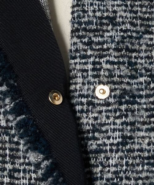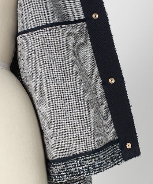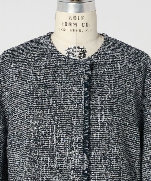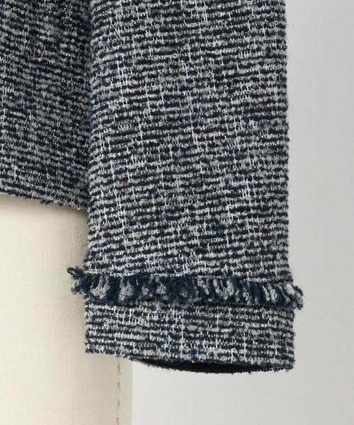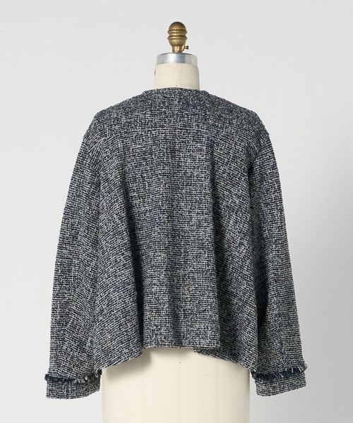 袖口と前端には共糸のフリンジを施し、気軽に羽織れるツイードジャケットのようなデザインに仕上げました。