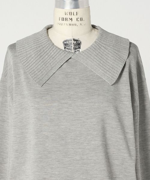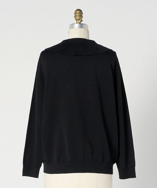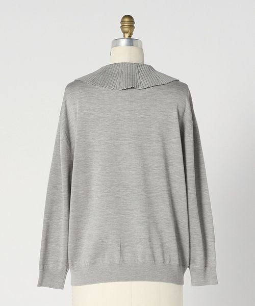 襟部分のリブデザインが、シンプルな中に洗練された表情を加えるニットプルオーバー。