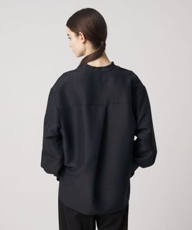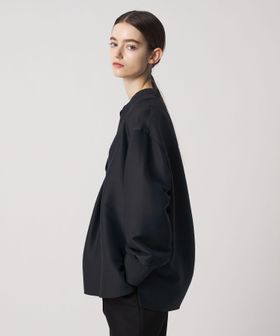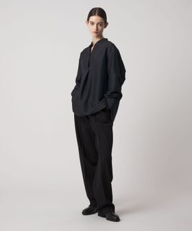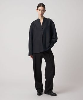 長め着丈のビッグシルエットを、深めの前開きと太めの袖で女性らしさを加えたブラウス。