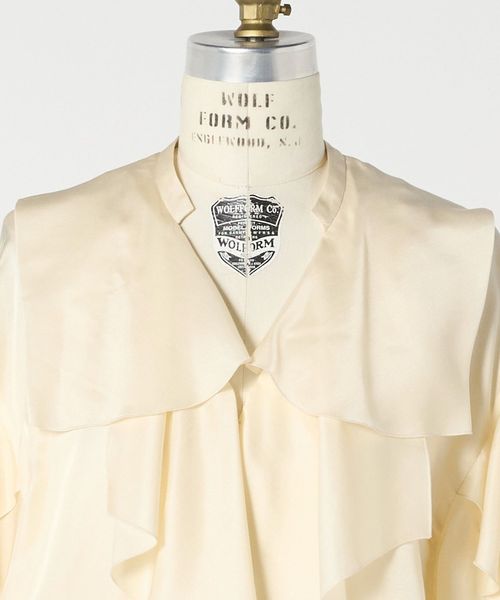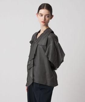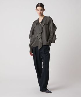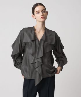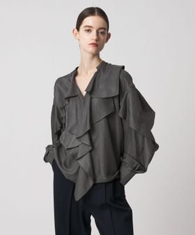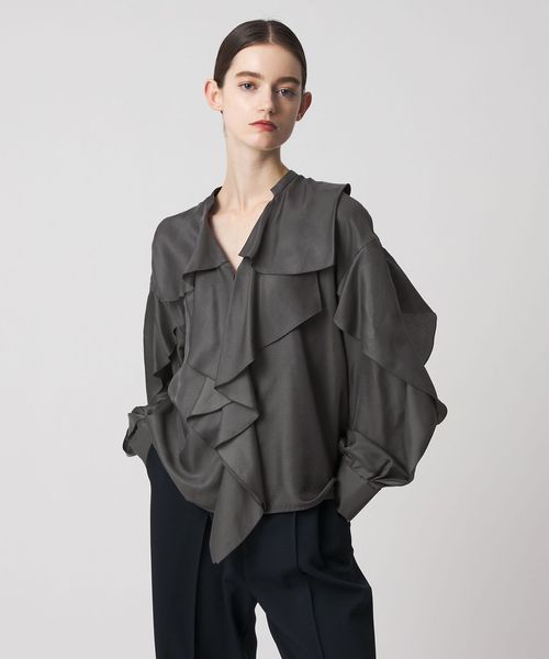 大胆なフリルをとろみのある素材で仕立てたブラウス。