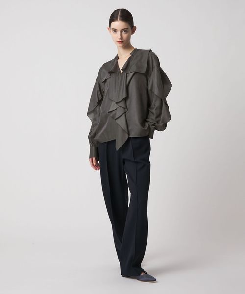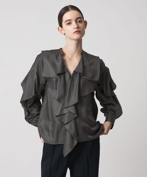 しなやかなフリルが上品なニュアンスを添えるブラウス