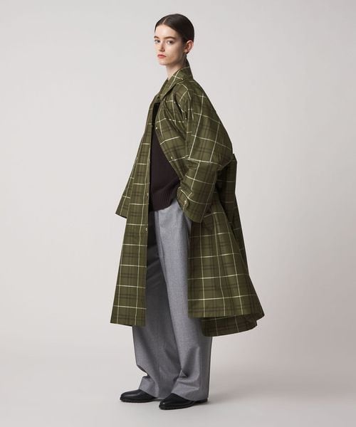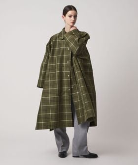 大胆なシルエットと印象的なチェック柄で魅せるコート
