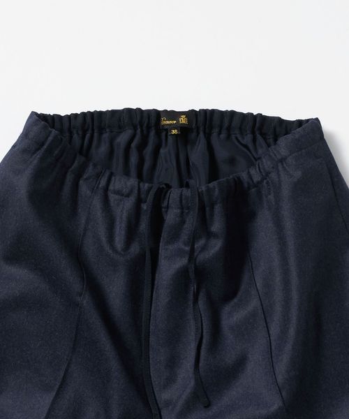 ウェストゴムとドローコード仕様でイージーな履き心地ながらも、スラックスのようなきちんと感がある仕上がりにしています。