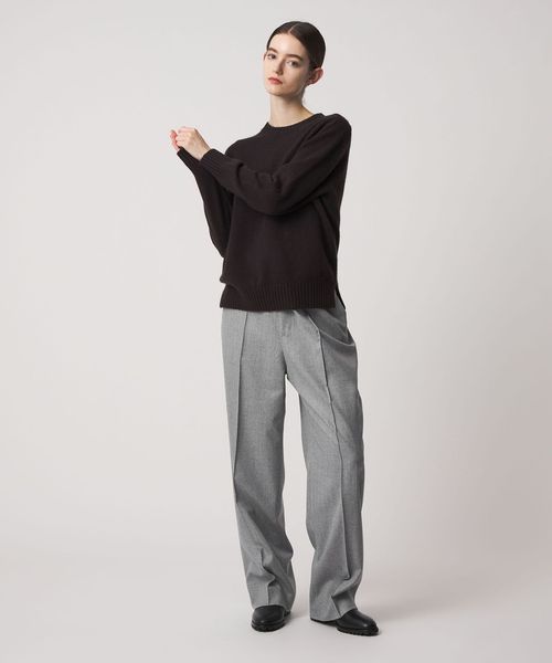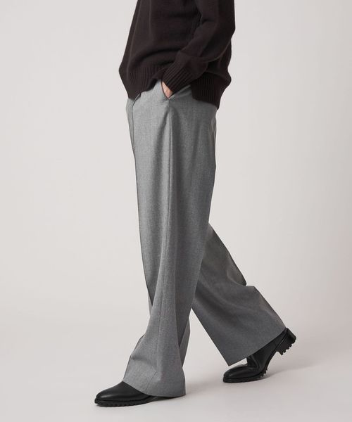 太めのストレートラインが印象的な、センターシーム入りのパンツ。