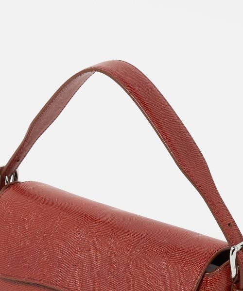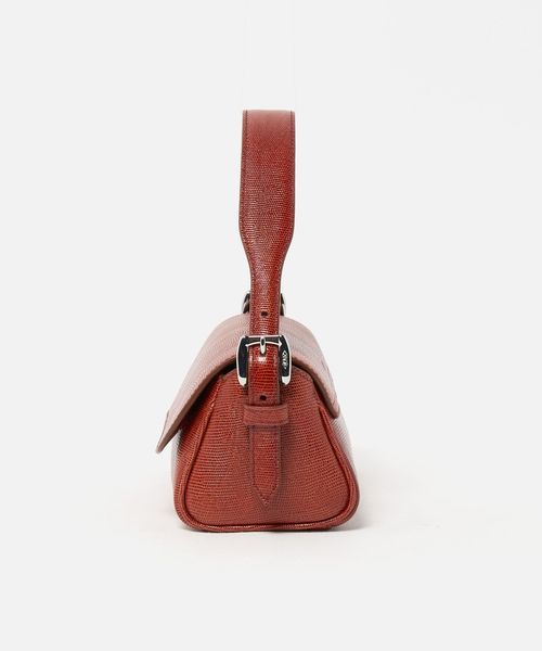 深みのあるレッドカラー特徴的なフォルムがコーディネイトのアクセントにもある一品です。