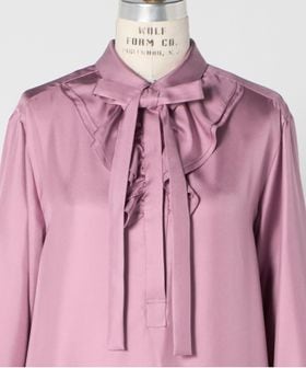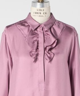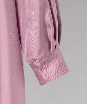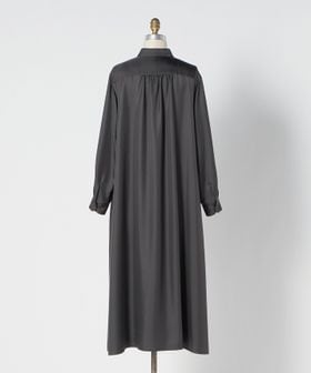 裾に向かって広がったボリュームのあるラインが美しいドレープを生み出し、小ぶりな襟のバランスが上品さとフェミニンさを引き立てます。