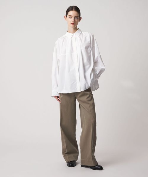ほどよい落ち感が魅力の、コットン混へリンボーン素材を使用。