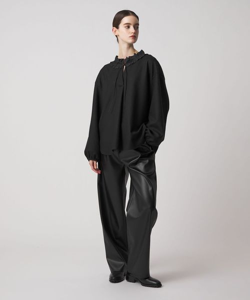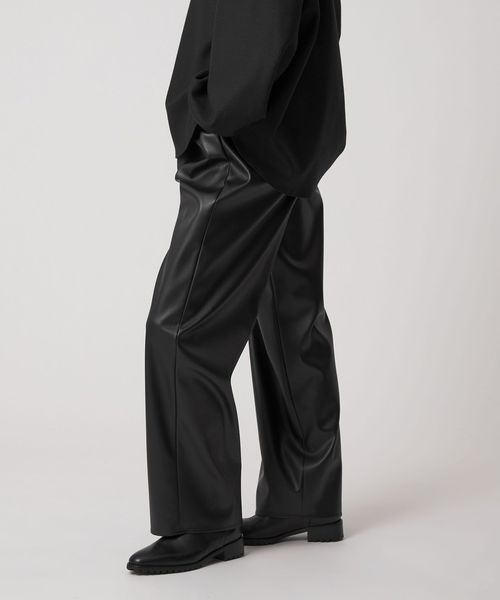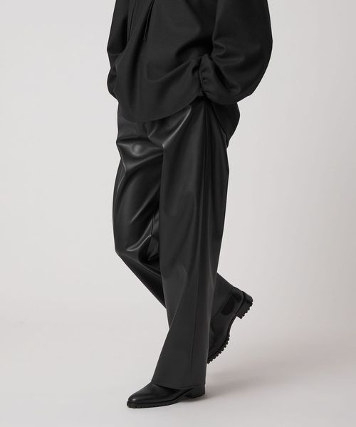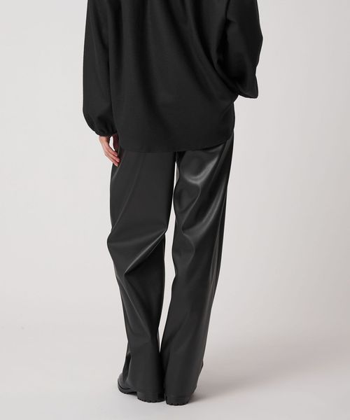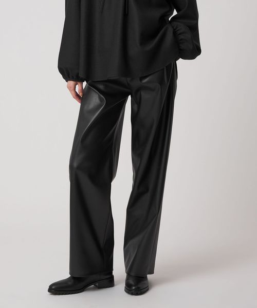 ウェストにドローコードを入れ、イージーな履き心地に仕上げたレザー調のパンツ。