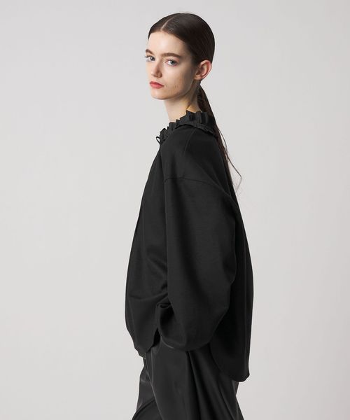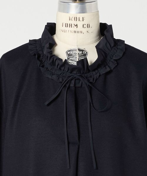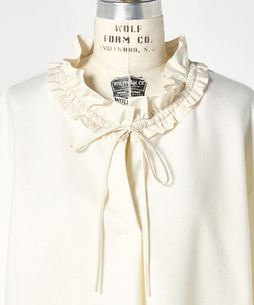 フリルデザインが顔回りを華やかにするカットソーブラウス