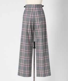 サイドにアジャストベルトを施した、ワンプリーツ入りのストレートパンツ。