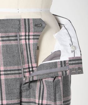 グレーベースにピンクを差し込んだグレンチェック柄が、上品さの中にさりげない華やかさを添えます。