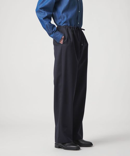 ウェストにドローコードを入れた、イージーに着こなせるドロストパンツ。