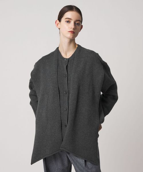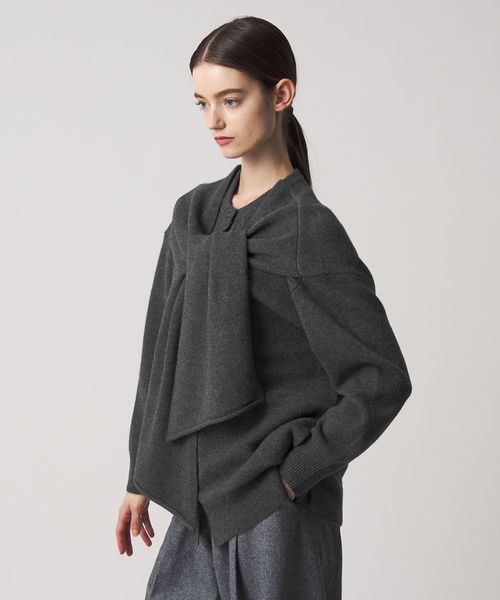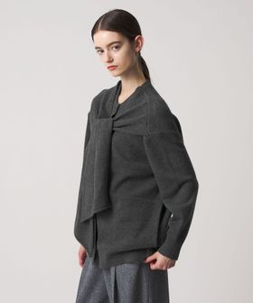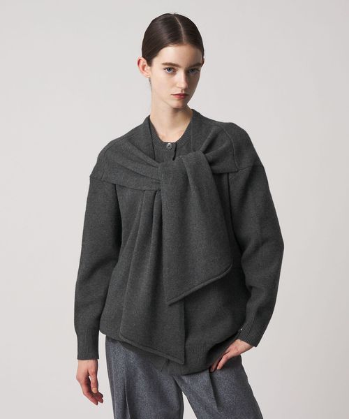 肩からあしらわれたストールデザインが特徴的なやや肉厚なカーディガン。
