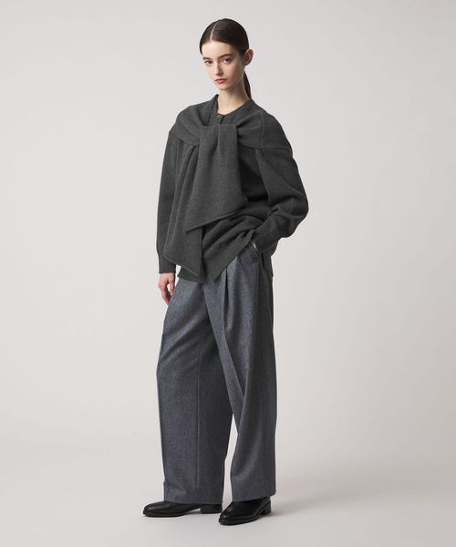 ストールディティールを結ぶ、垂らす、巻くなどしてアレンジすることで表情の変化が楽しめます。