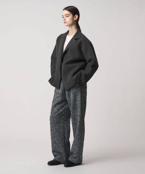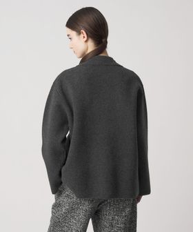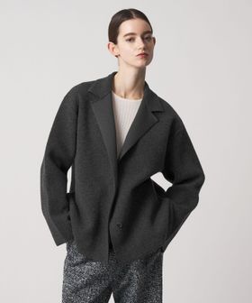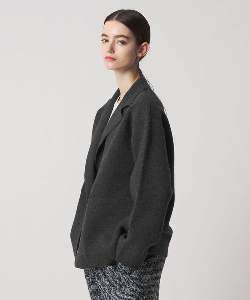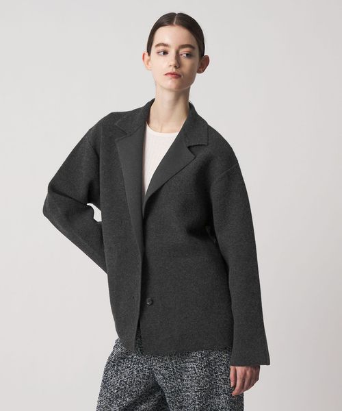 ニットならではの柔らかさとボンディングのような張り感を併せ持つ、新鮮な風合いのジャケットカーディガン。
