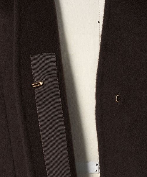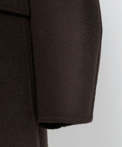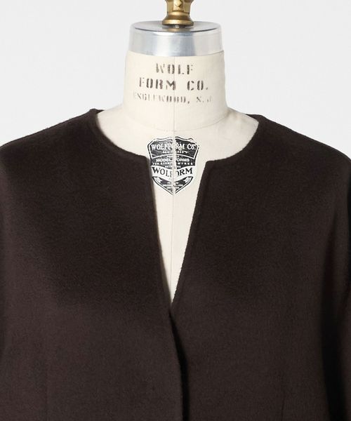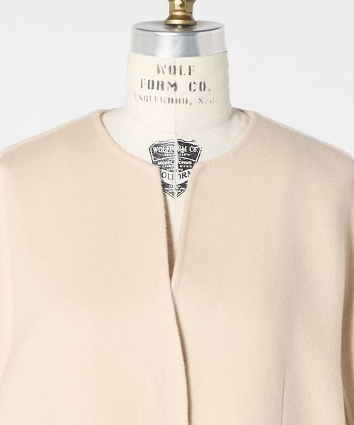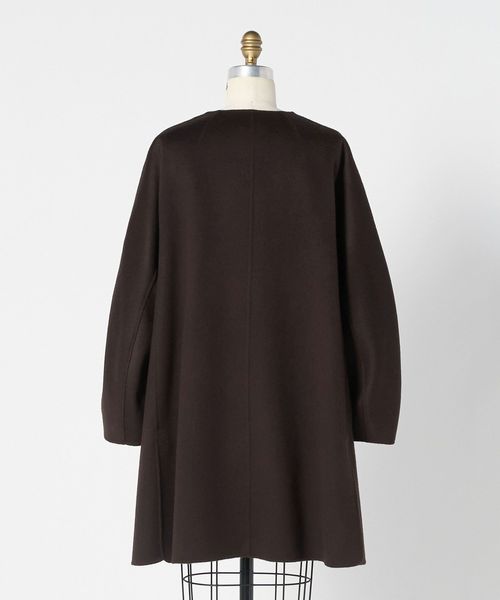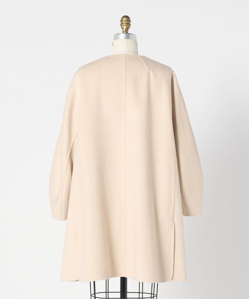 袖口に向かって緩やかに丸みを帯びたシルエットが、柔らかな印象を添えるノーカラーコート。