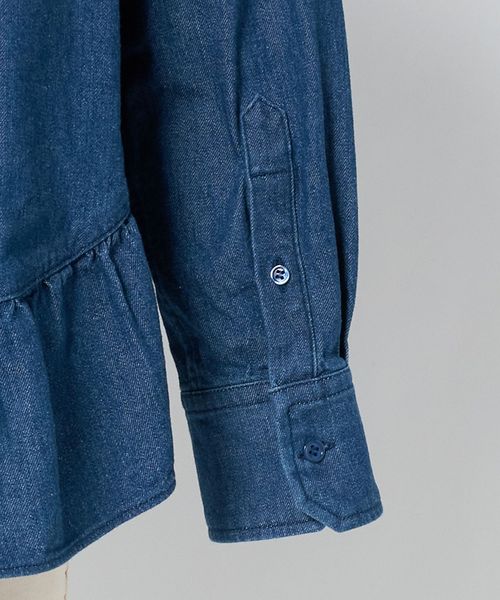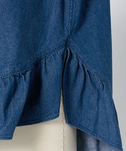 裾のラッフルフリルが優雅に揺れるデニムシャツ