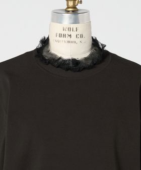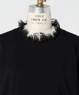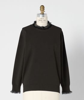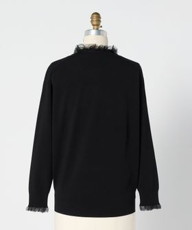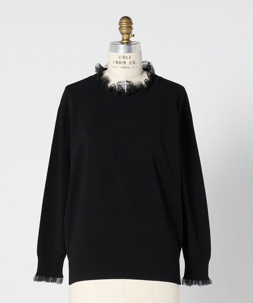 ネックと袖口にシアーなフリルをあしらったロングスリーブニット。