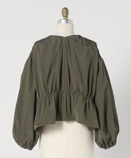 ギャザーをたっぷりと寄せ、華やかなフォルムに仕上げたブラウス。