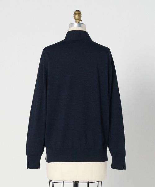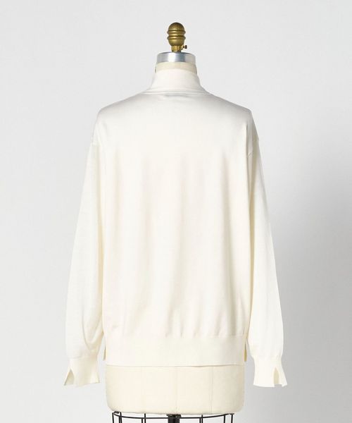 薄手のウールベースの糸で編み立てた生地感は、1枚着でももちろんジャケットのインナーにも使えます。
