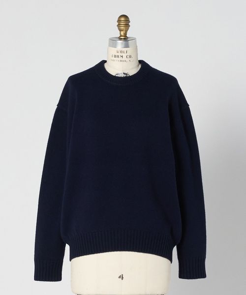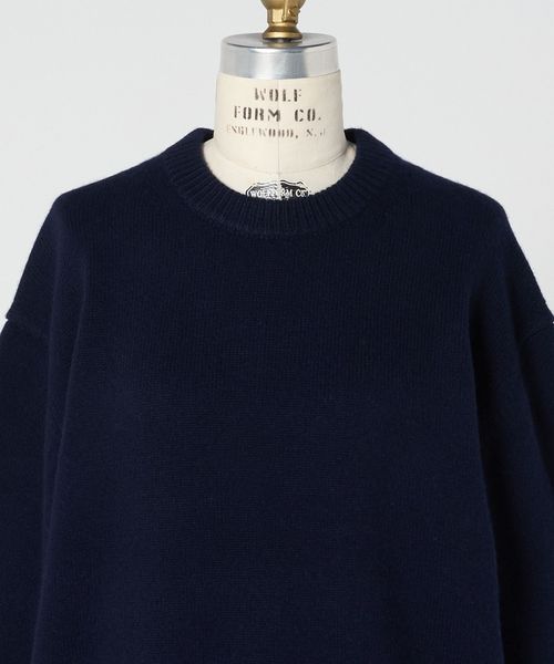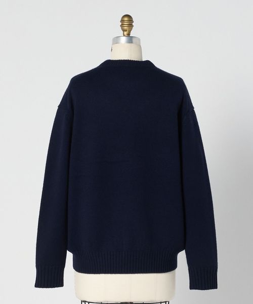 抜け感のあるデザインと、きちんと感のあるトラッドな雰囲気が調和したベーシックなクルーネックニット。
