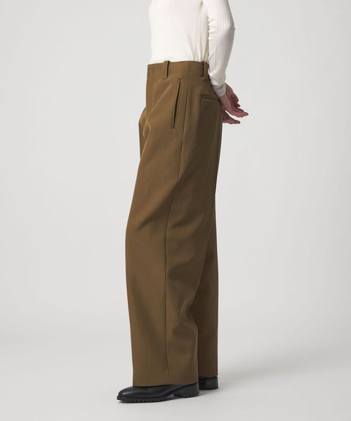 艶やかでいて抜け感のあるフォルムがポイントのツイルパンツ