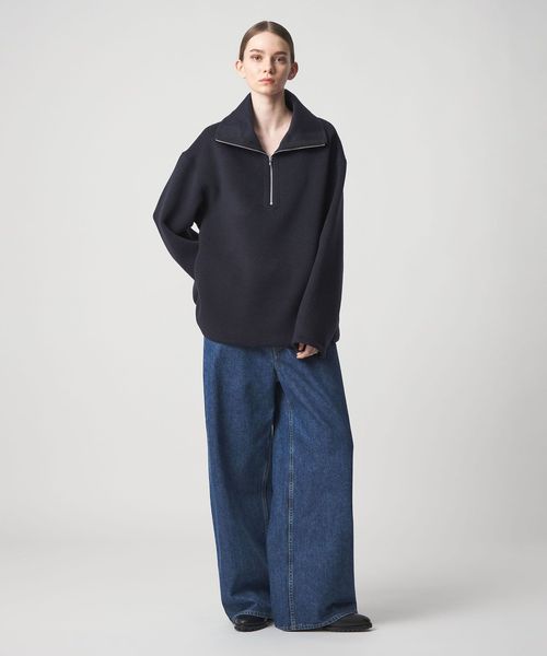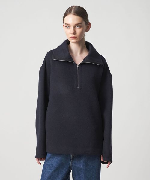 贅沢な素材が包み込む洗練されたハーフジップトップス