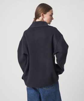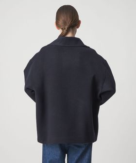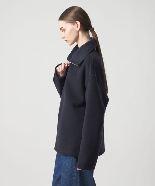 ジップを開ければ、衿を寝かせたときの大きなフォルムが美しく、着こなしに奥行きを与えるデザイン。