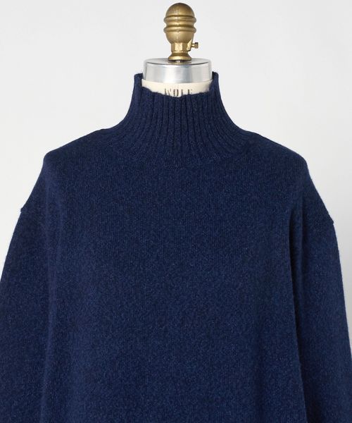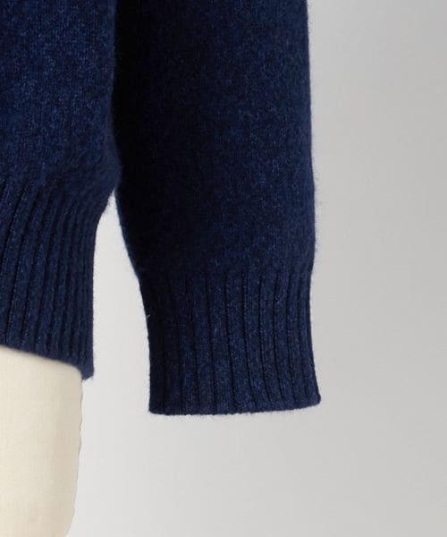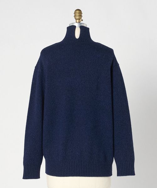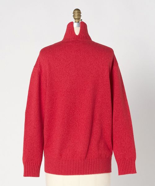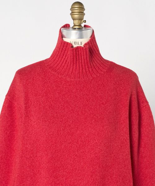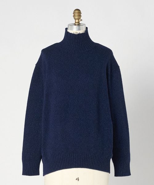 なめらかで艶やかなカシミヤ100%の糸で編み立てたタートルネックニット。