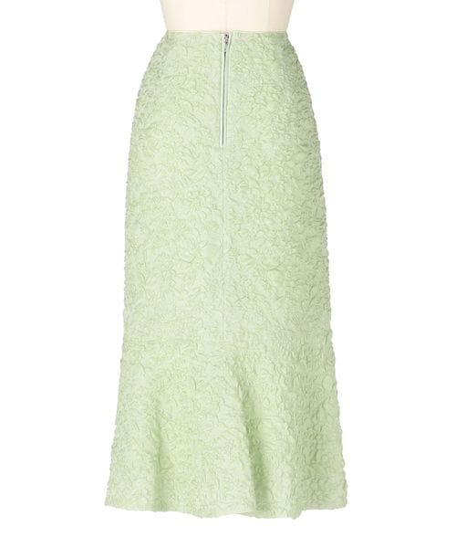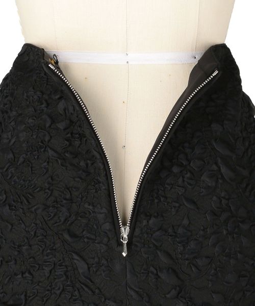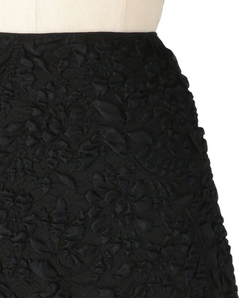 凹凸感ある華やかなジャガード素材が引き立つ、すっきりとしたタイトラインのスカート。