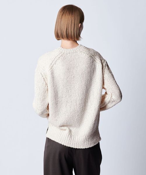 表情のあるブークレー糸で編み立てた、上品さを引き立てる素材がポイントです。