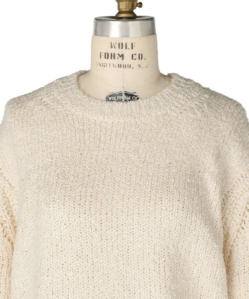 表情のあるブークレー糸で編み立てた、上品さを引き立てる素材がポイントです。